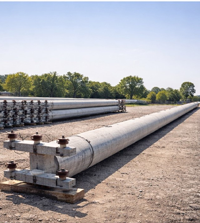 Utility-grade 9 m PCC pole engineered for strength, durability, and reliable 11 kV power distribution networks.
